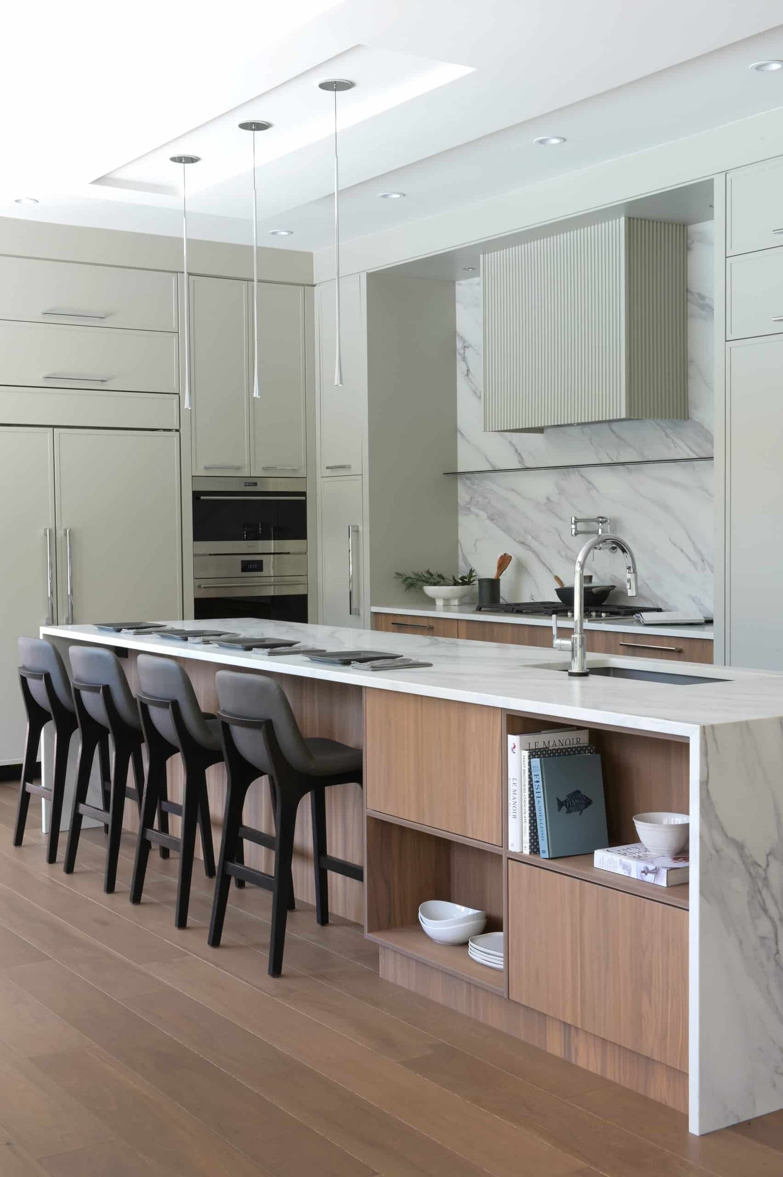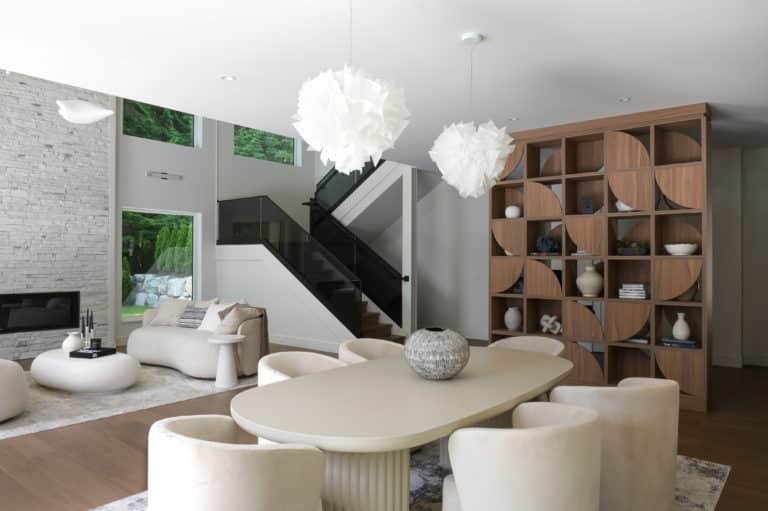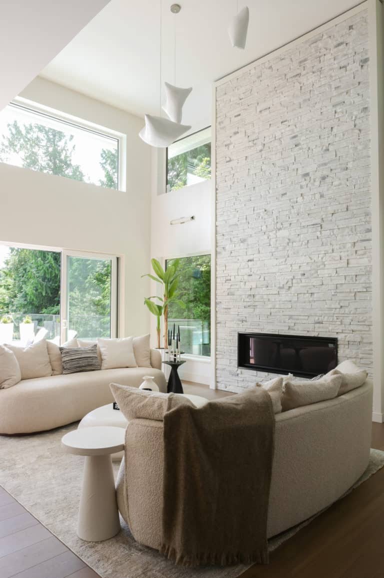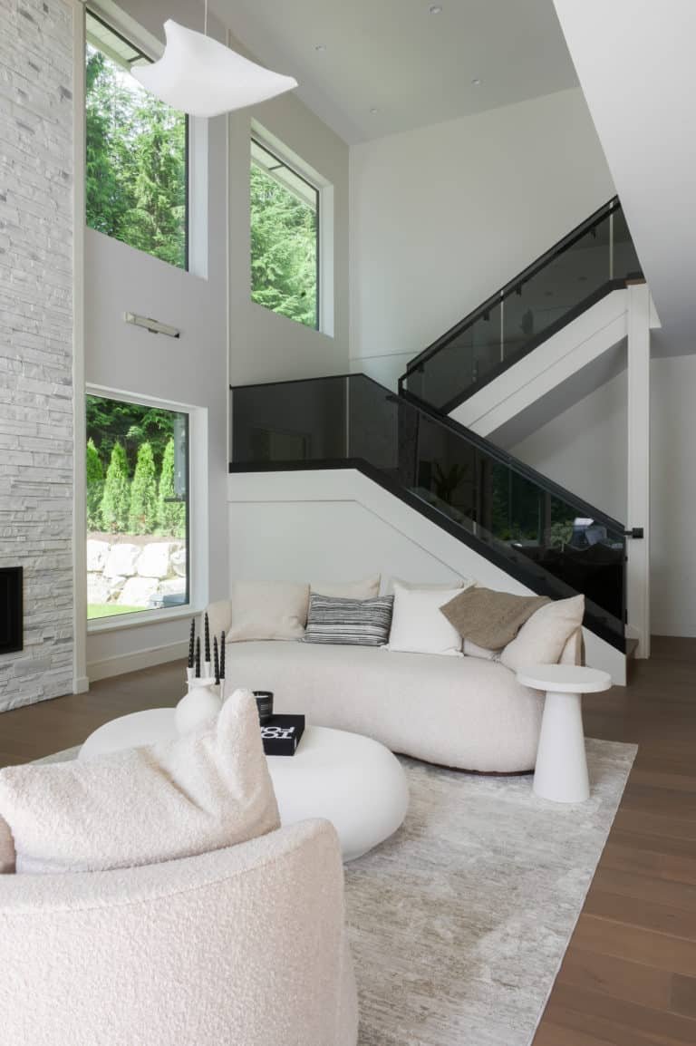 This British Properties home was designed as a study in understated luxury. Generous ceiling heights and expansive spaces called for an approach that would complement the scale of the architecture while introducing warmth, softness, and a greater sense of intimacy. Through a restrained material palette, layered finishes, and thoughtfully designed custom elements, the interiors strike a careful balance between sophistication and ease. Every detail was considered to support this West Vancouver home, to feel polished and elevated, while remaining inviting and effortless for everyday family living.
