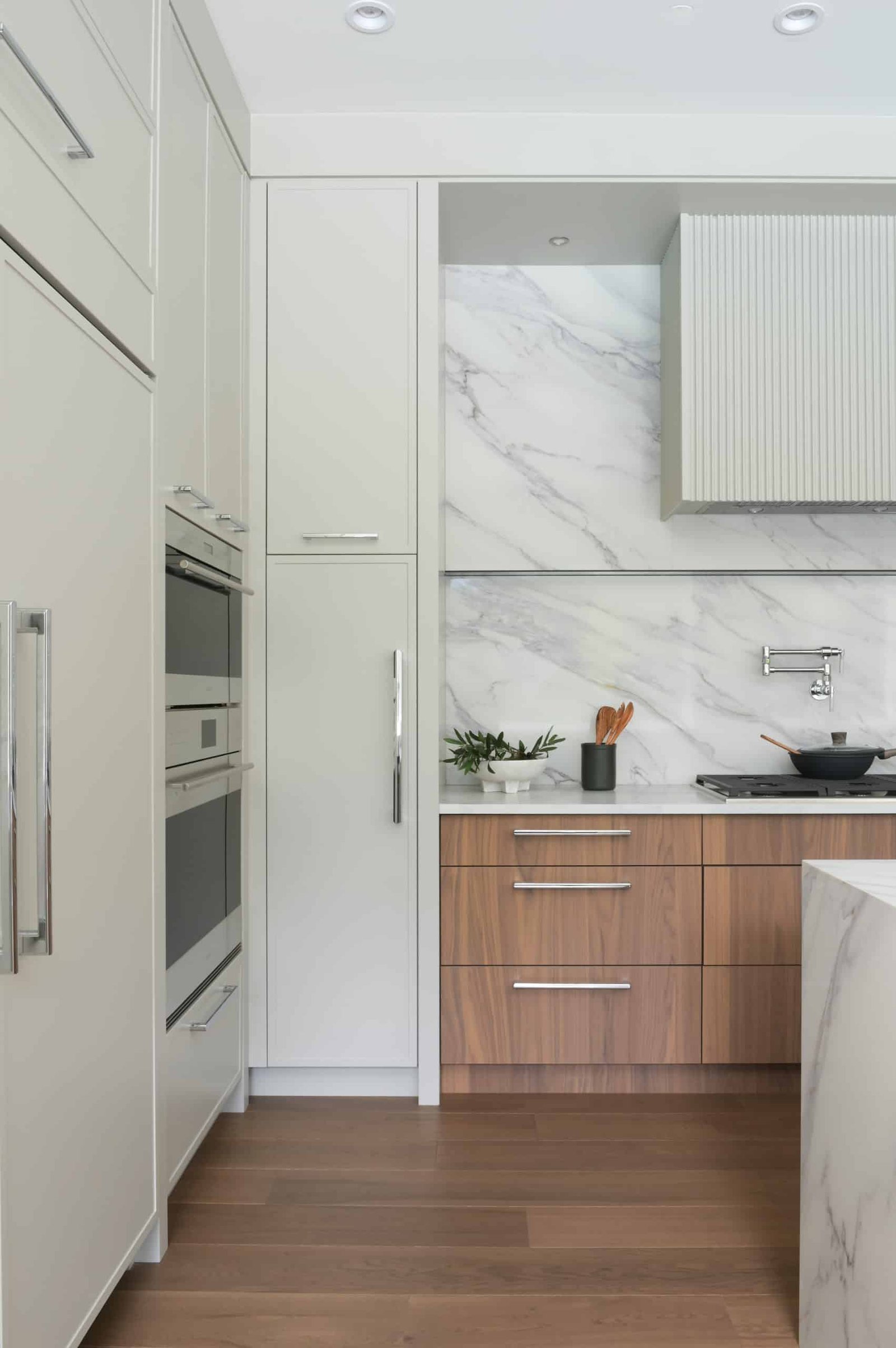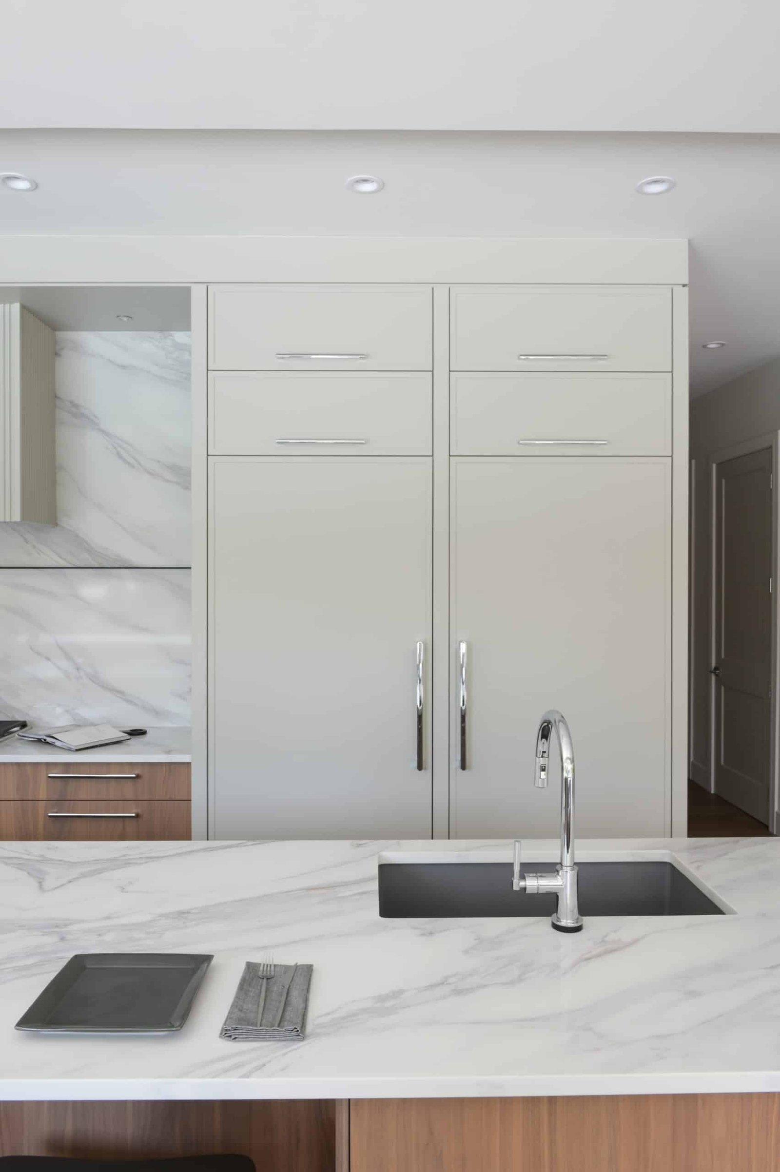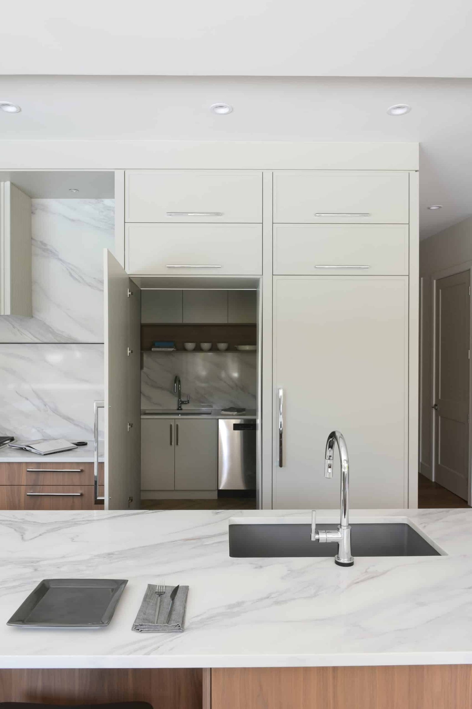 This British Properties home was designed as a study in understated luxury. Generous ceiling heights and expansive spaces called for an approach that would complement the scale of the architecture while introducing warmth, softness, and a greater sense of intimacy. Through a restrained material palette, layered finishes, and thoughtfully designed custom elements, the interiors strike a careful balance between sophistication and ease. Every detail was considered to support this West Vancouver home, to feel polished and elevated, while remaining inviting and effortless for everyday family living.
