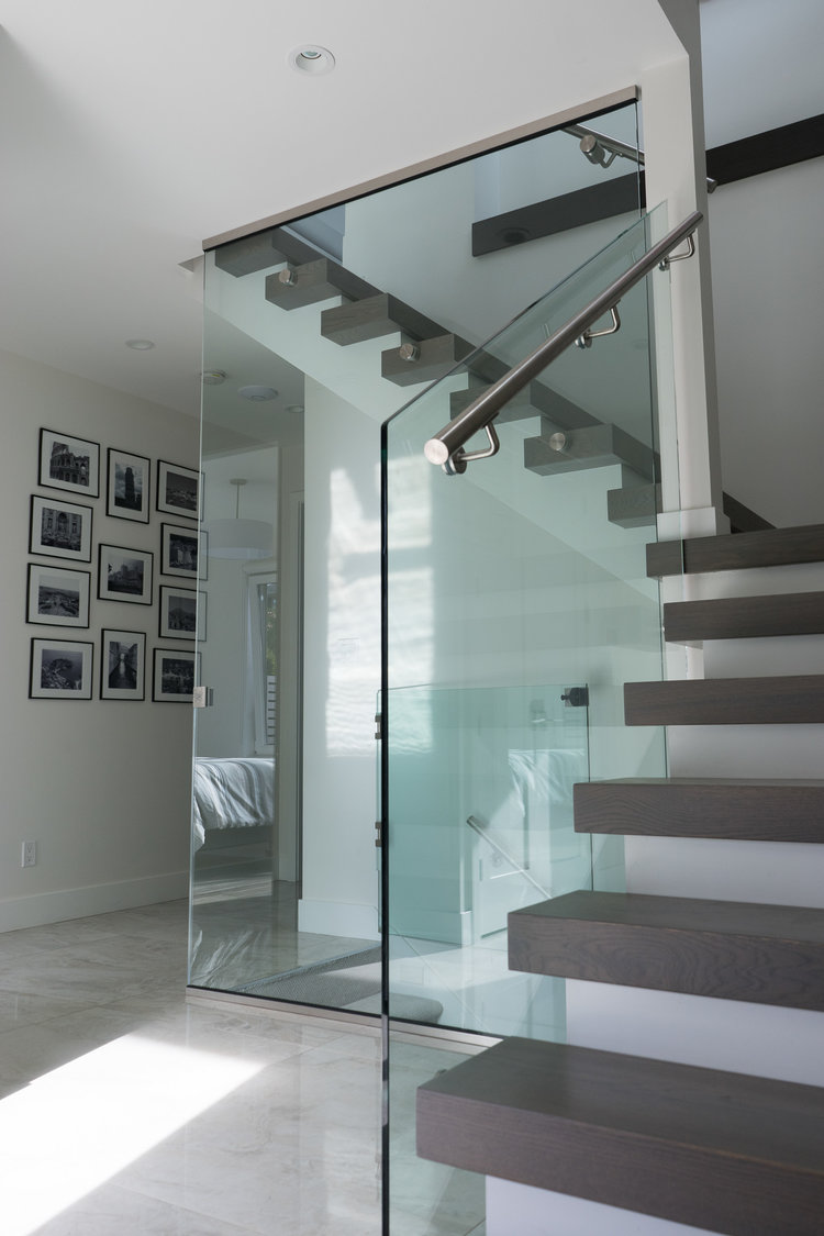 This home was situated close to the water with a killer view of the inlet – it was however quite a narrow lot. Our interior design studio visually widened the space by creating multiple focal points along the long edges, and incorporated ceiling details that helped to define the areas, giving the impression that the space is much larger than it actually is. Every area of the open space was treated individually so that each became an experience, with everyday functional needs like doors and storage becoming visual art pieces.